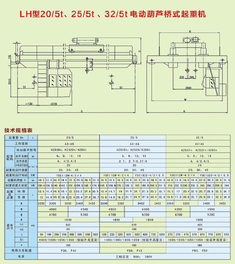 LH型20t、25t、32t電動葫蘆橋式起重機