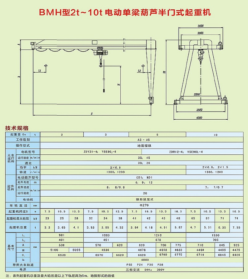 BMH型電動葫蘆半門式起